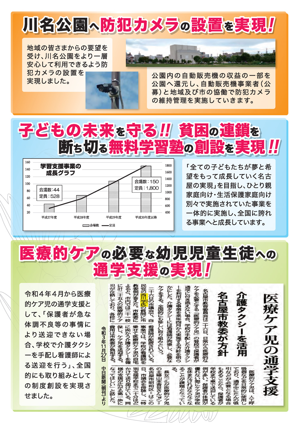 ある友人からの相談がきっかけで私が平成28年9月に本会議で質問したことを契機に、子どもの発達に不安を抱える保護者を支える「いこいの家」は、当時市内5か所だったものが、昨年度には各区1か所、全体で16か所に拡充し、診察が可能な医療機関情報もウェブに掲載されるようになりました。